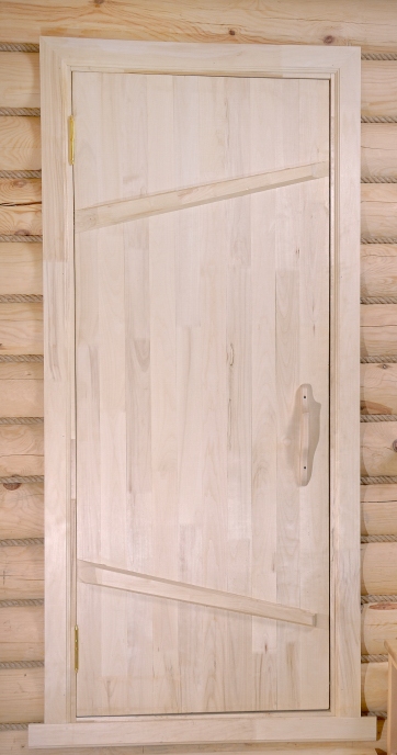 Банная дверь на иглах, из массива липы категории А изготовлена из 3 слоев древесины с поперечно расположенными волокнами.